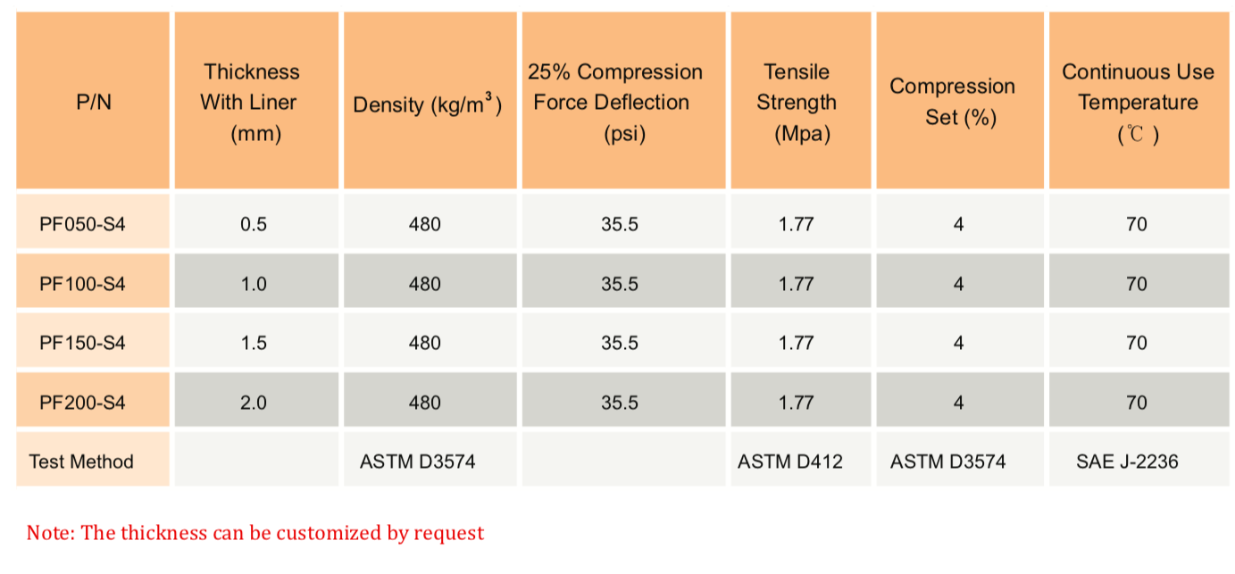 TM PF-S4 系列是一種穩(wěn)固、快速回彈的泡沫,用于電子設備的緩沖、保護性密封和長期間隙填充。S4系列具有非常好的耐磨性、高密封性能和優(yōu)異的沖擊吸收性能,可用作腳墊。" />