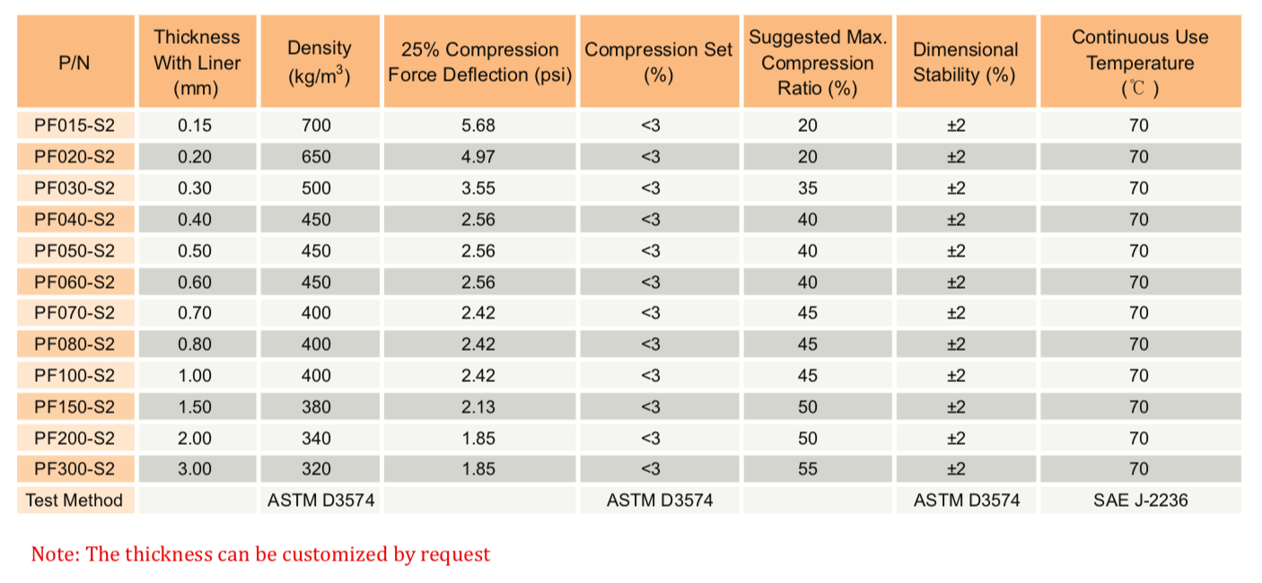 TM PF-S2 系列是一種柔軟、緩慢回彈的泡棉,用于電子設備應用中的緩沖、保護性密封和長期間隙填充。S2系列泡棉具有極低的壓縮永久變形、高密封性能和優(yōu)異的沖擊吸收性能。" />